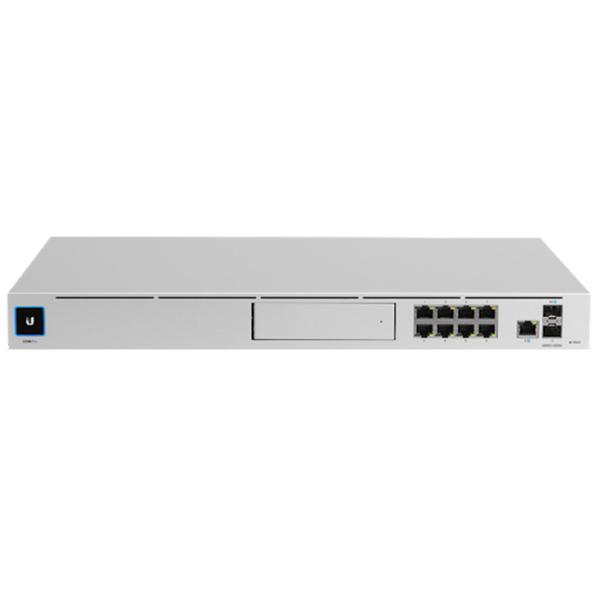 The Dream Machine Pro is an all-in-one network appliance for a scalable network in an office, retail, or hospitality environment. Powered by a fast 1.7 GHz quad-core processor, the UDM Pro combines multiple functions into a single device: • Advanced Security Gateway with Built-in Switch • Dual WAN Ports: One 10G SFP+ and One Gigabit RJ45 • One 10G SFP+ LAN Port • Embedded Enterprise Software:Network • 3.5" HDD Bay for NVR Storage (2.5" HDD also supported) Software The UDM Pro includes the Network Controller so you can manage your Switches and APs. It can also run the Protect software for convenient monitoring and complete management of your camera surveillance system. Video recordings are stored on the built-in NVR (hard drive not included) and can be easily accessed using the Protect mobile app. Via remote access, you can securely view the recordings that are privately stored on the UDM Pro rather than a third-party server.