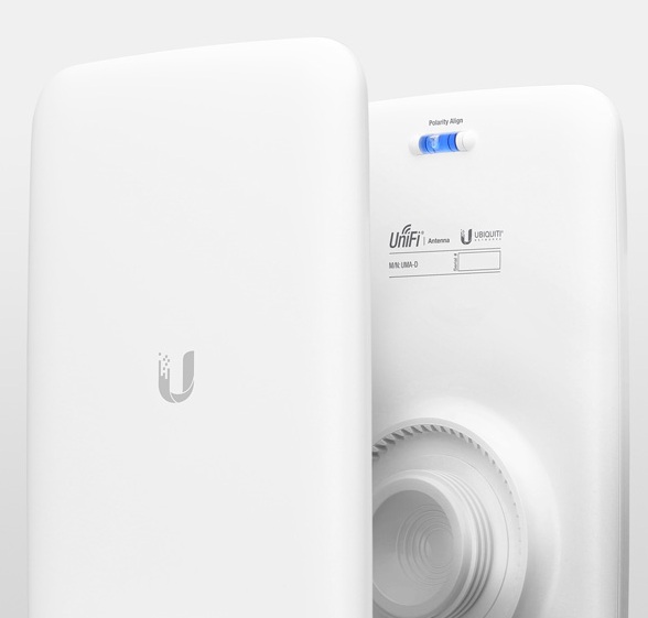 The UMA-D is a dual-band, dual-polarity antenna optimized for 802.11ac. It offers a directional radiation pattern and a three-axis ball joint mount for precise aiming.